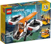 Carry out secret missions and explorations with the Drone Explorer, featuring an orange, white and black color scheme, and lots of realistic details, including twin rotors and posable cameras, plus a large opening cockpit and landing gear that doubles as a lifting claw. This 3-in-1 LEGO® Creator building toy rebuilds into a Swamp Boat or a Propeller Plane for even more action and adventure.