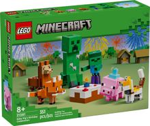 Build-and-play Minecraft® models – Includes a Creeper™ (head opens to revealits gunpowder supply), baby zombie, baby fox, baby cat, baby llama and baby pig, all with movable parts, plus a cake