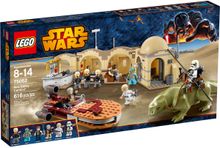 Includes 8 minifigures with assorted weapons and accessories: Han Solo™, Luke Skywalker™, Obi-Wan Kenobi™, Greedo™, a Sandtrooper™ and 3 Bith™ Musicians