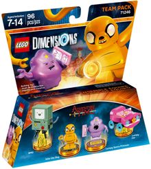 Enhance your LEGO® DIMENSIONS™ experience with the Adventure Time™ Team Pack, featuring Jake the Dog and Lumpy Space Princess. Simply attach the minifigures to their LEGO Toy Tags and place them on the LEGO Toy Pad to bring them to life in the game. Then use their special abilities to solve puzzles and battle enemies. Add the 3-in-1 Lumpy Car and BMO to boost your gameplay, and then rebuild them into the Lumpy Truck and Lumpy Land Whale or DOGMO and SNAKEMO for upgraded abilities in the game. This set includes buildable Jake the Dog and his torch, and Lumpy Space Princess and her mobile phone, two 3-in-1 vehicles, and an Adventure World with a Battle Arena.