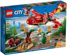 Help the firefighters protect the forest critters of LEGO® City with the exciting 60217 Fire Plane set, featuring a dual-propeller firefighting plane with pontoons, detachable minifigure cockpit, hatch on top to load the water elements and a lever to drop them. This rescue building toy set also includes a fire buggy with new-for-January-2019 3-shot stud shooter, plus 2 trees, 3 minifigures and a skunk figure.