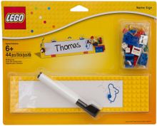 Put your name in LEGO® bricks with the dry erase Classic Name Sign. Designed to look like a yellow LEGO baseplate, it’s ready to decorate with classic bricks and elements. Personalize it with the included a dry erase marker by writing your name!