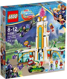 Join in the action-packed LEGO® DC Super Hero Girls™ world as Supergirl™ and Poison Ivy™ battle Lena Luthor™. This great set features three mini-doll figures, a three-level school building with swiveling classrooms, café, extending ramp, chain and disc shooters, Poison Ivy’s motorbike and Lena’s jet with rotating thrusters and a gripping claw at the front, plus two hypnotized purple Kryptomites.