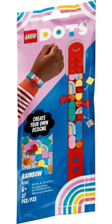 Arts-and-crafts fans can show off all the colors of the rainbow with this LEGO® DOTS Rainbow Bracelet with Charms (41953) set. This kit, made for kids aged 6+, includes an adjustable red bracelet, 2 charm bases and 2 dangling heart charms, plus lots of rainbow-inspired tiles. The bracelet is ready to decorate, and kids can make it totally theirs to suit their outfit or mood.