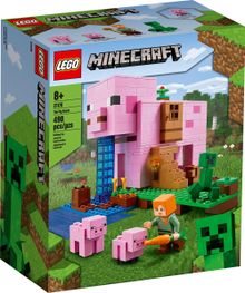 Take a Minecraft™ player’s passion for their favorite online game to the next level with LEGO® Minecraft The Pig House (21170). This authentic Minecraft playset has all the fun, creativity and adventure of the online game – plus the physicality and versatility of LEGO building toys.Looking for the perfect Minecraft gift?Kids use their Minecraft skills to build the kind of wacky creation they create in the online game: a house shaped like a giant pig. The side of the structure opens to reveals alarge room and a lift-off roof uncovers more room to play. The model is endlessly reconfigurable – and the entire head-room detaches to fit elsewhere on the model. Alex, the game’s heroic daredevil, is here to share the fun, while an iconic Creeper™ is determined to ambush the players. There’s activity outside too, with 2 cute pigs to care for. And, for added Minecraft authenticity, there’s an explosion function that blasts the toy to pieces!