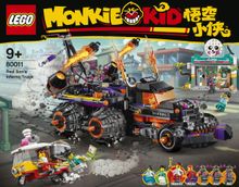 This red-hot LEGO® Monkie Kid™ building toy (80011) for youngsters features Red Son’s Inferno Truck with an integrated, detachable race car, a Speedy Panda store and Pigsy’s tuk-tuk to inspire action play.
