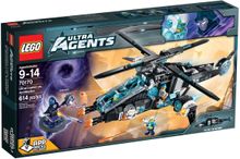 Red alert, Team Leader Solomon Blaze! AntiMatter is attempting to take over the city by opening portals of evil with his powerful staff. Call Elite Agent Max Burns and Ultra Agent Caila Phoenix to the awesome UltraCopter and launch into battle. Pack vital equipment in the rear compartment, spin the huge dual rotor blades and soar into the sky. Target AntiMatter’s anti-gravity flyer with the brick stud shooters and evade the über-villain’s flick missiles. Pop out the missile launchers to flip from stealth mode into full battle mode and unleash the powerful spring-loaded shooters. Then release the zip line to lower an Elite Agent and bring down AntiMatter before it’s too late. Play out other thrilling digital missions on your tablet using your AppBrick Gadget with 4 AppBricks! Includes 4 minifigures with a weapon and assorted accessories: Team Leader Solomon Blaze, Elite Agent Max Burns, Ultra Agent Caila Phoenix and AntiMatter.