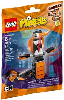 Learn Mixel martial arts skills with serpentine Nindjas tribal member Cobrax. This posable Mixel has a king cobra hood, snake tongue and spinning body, plus 2 ninja forks. For more building and role-play fun, collect all 3 Nindjas featured in LEGO® MIXELS™ Series 9 to create the MAX.