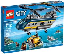 Emergency! The deep-sea explorers in their submarine are being attacked by a shark and need your help! Jump aboard the awesome Deep Sea Helicopter, spin the powerful twin rotors and thunder over the ocean at breakneck speed! When you reach the scene, lower the winch, hook up the submarine and head for the safety of land. It’s just another day for a LEGO® City helicopter hero! Includes 3 minifigures with assorted accessories: a submariner, pilot and a scuba diver.