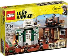 Go after the bandits when they rob the town bank in a Colby City Showdown! Fire the cool rooftop cannon as the bandits blow up the vault and try to steal the silver! Take cover and help the Lone Ranger, Tonto and Texas Ranger Dan Reid put the gun-slinging gangsters back behind bars! Includes 5 minifigures with weapons and accessories: the Lone Ranger, Tonto, Texas Ranger Dan Reid and 2 bandits, Ray and Frank.