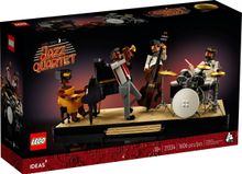 Get into your groove and compose a jazz masterpiece. Create your own LEGO® Ideas Jazz Quartet (21334) featuring brick-built figures of a pianist, bassist, trumpeter and drummer in dynamic poses, plus highly detailed buildable models of their instruments – a grand piano, double bass, trumpet and drum kit.