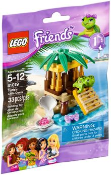 Build a beautiful island oasis for the turtle with a tiny tiki hut made just for him! Lower the ramp so he can climb inside! Put a pretty bow on his head then take him for a swim in the pond to find a clamshell with a pearl inside. Help make him the happiest turtle in Heartlake City! Take care of the turtle online at LEGO.com/friends and download more building inspiration. Combine with 41017 Squirrel's Tree House and 41018 Cat's Playground to create a bigger house or playground for all 3 animals with building instructions available on LEGO.com/friends.