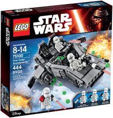 Call in weaponized support with the First Order Snowspeeder! With a crew of three, this rapid response vehicle features a forward storage compartment, fixed stud shooter in the cockpit, two rapid-fire stud shooters built into the engines and transparent wheels hidden out of site for a true ‘hover’ look. Now you can recreate your own great scenes from Star Wars: The Force Awakens. Includes 3 minifigures with assorted weapons: 2 First Order Snowtroopers and a First Order Snowtrooper Officer.