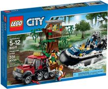 The crooks are busy stashing loot at their tree-house hideout located deep in the swamp, happy in the knowledge that no one could ever catch them in their getaway vehicle, a powerful, half-tracked off-roader. Little do they know that the police are about to arrive in the ultimate swamp vehicle—the police hovercraft! Get behind the wheel of this super-agile machine and apply the power, there’s no escape for the crooks this time! Includes 3 minifigures with assorted accessories: a police officer and 2 crooks.