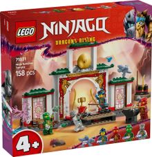 Delight ninja toy-loving kids with the LEGO® NINJAGO® Ninja Spinjitzu Temple (71831). This dragon toy playset allows children aged 4 and up to recreate adventures from season 3 of the NINJAGO Dragons Rising TV show. This ninja toy role-play set is ideal for pretend play with a NINJAGO tournament stage, garden, teahouse and weapons training area.