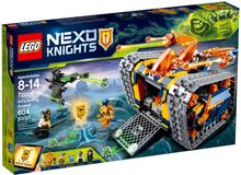 Get ready for a heavy-duty LEGO® NEXO KNIGHTS™ battle with Axl's Rolling Arsenal, featuring hidden flick missiles and opening drawbridge. Pitch the Jestroyer with its dual 6-stud rapid shooters against the Vyro Glyder. Lock up the critters in the Critter Trapper's storage chest and save Knighton from the tech infection. This popular kids toy includes 4 minifigures and 3 scannable shields.
