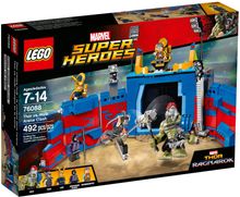 Role-play an arena duel between Thor and Hulk and then team up with these two old friends to topple Grandmaster. This awesome LEGO® Marvel Super Heroes Thor vs. Hulk: Arena Clash set features an arena with a sliding gate, secret weapons rack, 2 toppling pillars, smash-function wall and an opening prison cell. Use Thor’s super jumper to knock Grandmaster off his throne and Loki off his seat. Includes 4 minifigures plus a Hulk big figure with assorted weapons and accessories to intensify the action play.
