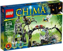 Spinlyn, the Spider Queen, has crawled back to her creepy Cavern with the CHI. Now the massive 6-legged spider is using the winch to lower to the ground and patrol the lair. Head into spider territory with Eris and Rogon on his powerful rhino bike. Fire the catapult and evade Spinlyn’s webs and poison shooters and grab back the golden CHI. Act fast before the enormous spider blows out the prison’s shooting web to send Eris, leader of the Eagle tribe, flying! Includes 3 minifigures with weapons: Spinlyn, Rogon and Eris in her new armor.