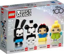 Help kids aged 10+ celebrate Disney with this LEGO® BrickHeadz™ | Disney 100th Celebration (40622) set, featuring Oswald the Lucky Rabbit (Disney’s first character), Mickey Mouse (the first ever animated character), Snow White (the star of Disney’s first feature film), and Tinker Bell – the first Disneyland mascot. Assemble the models, set them on their individual baseplates and display them anywhere. Snow White’s torso includes a decoration. The set makes a fun, collectible gift for Disney fans.
