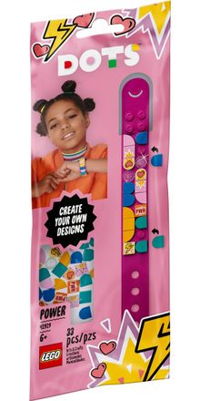 Support your kid’s love of creative DIY with this empowering LEGO® DOTS Power Bracelet (41919) kit, featuring an adjustable band and 32 bold and colorful tiles. Play starts with decorating, straight out of the bag!