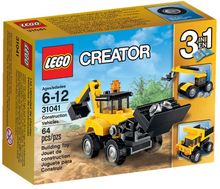 Bring in the heavy-duty backhoe loader, featuring a classic yellow and black color scheme with an orange warning beacon, tipping front bucket, working rear digger, driver’s cab and rugged deep-tread tires. Maneuver into position, lower the bucket and scoop up the rubble! When you’re ready for another challenge, rebuild it to create a powerful dump truck or a high-reaching telehandler.