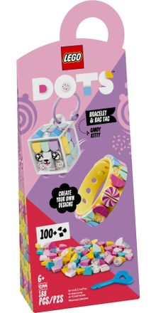 Design, wear, tag, share – Treat an arts-and-crafts fan with this LEGO® DOTS Candy Kitty Bracelet & Bag Tag (41944) craft kit. Start the creative fun by opening the bag