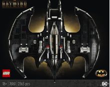 The iconic style of the Batwing from the 1989 BATMAN™ movie is enhanced by a sturdy stand, nameplate and 3 minifigures: BATMAN, THE JOKER™ and a Boombox goon.