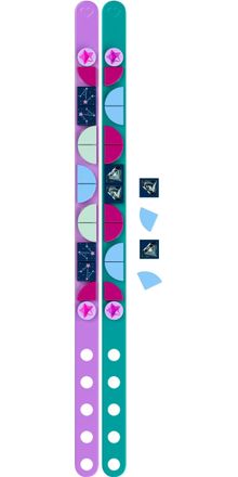 Fans of magic, mystery and stars will love designing this LEGO® DOTS Starlight Bracelets (41934) kit! This creative toy set features 2 adjustable, slender bands in teal and purple that fit around bigger or smaller wrists and 32 colorful tiles, including special, round, opalescent star tiles and star-map-decorated tiles. The bracelets are intended to be an easy, intuitive creation, so kids can decorate them to suit their outfit or mood and make them uniquely theirs.