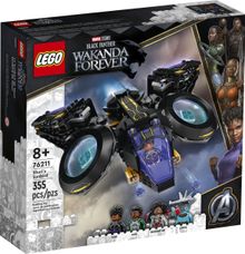 . This versatile and powerful-looking piece of Super-Hero equipment features 2 large engines on ball joints that kids can tilt and rotate to a variety of angles. Hinges allow the wings to be folded forwards and backwards. At the rear is storage for Shuri's fist weapons, and 2 stud shooters are mounted at the front. The set includes 4 minifigures – Shuri, Ironheart MK1, Nakia and Attuma – along with their cool weapons and accessories.