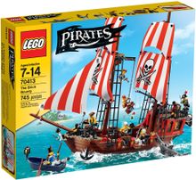Hoist the Jolly Roger and set sail! The pesky pirates are heading for the high seas aboard their mighty galleon, with a chest full of booty stashed in the hold. But the Bluecoat Soldiers have caught up with them in their rowboat and are ready for action! Help the Bluecoat Soldiers commandeer the vessel and recover the stolen treasure. Launch a fierce broadside attack and board the ship. Then draw your weapons and defeat the scurvy pirates. When you’re done, put the rogues behind bars and lock them up for good! The awesome LEGO® Pirates Brick Bounty features 2 tall masts with huge sails, rigging and crow’s nests, Jolly Roger, working winch with anchor, cannons, walk-the-plank function and a saw-nosed shark. Includes a skeleton and 7 minifigures with assorted weapons and accessories: a pirate captain, pirate first mate, pirate cabin boy, pirate cook, Bluecoat Admiral, Bluecoat Sergeant and a Bluecoat Soldier.