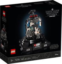 : The Empire Strikes Back as you build the first-ever LEGO® brick model of the Darth Vader Meditation Chamber (75296). Kick back and enjoy some quality time immersed in the rewarding building process and recreate lots of authentic details. The chamber opens and closes just like the real thing and features a big screen, control panels, a rotating seat for Darth Vader and a place for General Veers to stand opposite him.