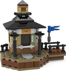 This detailed LEGO® Amelia Ticket Booth building toy features a ticket window, tower, jetty and a flag. Decorations include printed elements marked ’TICKET’ and ’AMELIA’ with schedule information. Inside the building is a riverboat museum with a small riverboat model and a microfigure. Fun to build and play with, the 152-piece LEGO Ticket Booth building set is a creative gift for kids aged 10 and up.