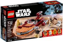 Recreate unforgettable scenes on desert-planet Tatooine, as young Luke and C-3PO go in search of mysterious hermit Ben Kenobi in his landspeeder. This iconic model features a two-minifigure open cockpit, three engines and an opening trunk to store his electrobinoculars. There’s also a Tusken Raider and womp rat to keep the action level high. Includes four minifigures plus a womp rat figure.
