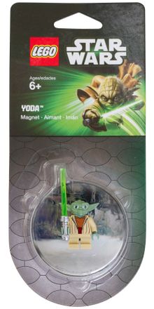 Feel the Force at home or school with an authentic LEGO® Yoda™ minifigure and Lightsaber attached to a decorated backplate and magnet. Stick to your fridge, locker and most metal surfaces.