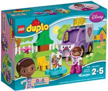 Rush to the rescue with Doc McStuffins and Rosie! Dress-up Daisy was skating in the garden and has hurt her leg. Put the decorated brick of poorly Daisy on the table while Doc examines the injury with her magic stethoscope, then turn the double-sided brick around to make Daisy’s leg all better! Young children will love Rosie the buildable ambulance and enjoy helping injured toys everywhere with this LEGO® DUPLO® brand Doc McStuffins™ set. Includes 1 LEGO® DUPLO® figure: Doc McStuffins with stethoscope. Combine with 10606 Doc McStuffins Backyard Clinic for toys who need further treatment.