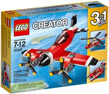 Experience this classic aircraft, featuring a beautiful red, white and black color scheme, spinning propellers and an opening cockpit with room for a minifigure (not included). Climb aboard, zoom down the runway and launch into the air. When you’ve completed your flight, lower the wheels to make a perfect landing! Rebuild to create a high-tech hydroplane or a helicopter.