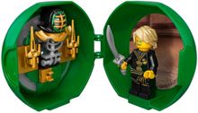 Prepare for ninja battles wherever you are with LEGO® NINJAGO® 853899 Lloyd’s Kendo Training Pod. This portable pod in the color of the Green Ninja features a lenticular image on the outside—view it from different angles to see either a picture of Lloyd's head or his eyes. It contains a Lloyd minifigure in Kendo outfit, Kendo mask element with brown rim and assorted ninja weapons.
