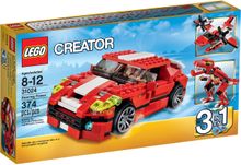Feel the awesome power from the beefy exhausts of this flashy 3-in-1 Roaring Power sports car. Featuring a sporty red and white color scheme, alloy-colored wheels and a cool rear spoiler for ultimate style and handling. When you’re done cruising, you can rebuild it into a ferocious dino or a twin-propeller seaplane—all this from just one set of bricks! Now that’s what you call a three in one!