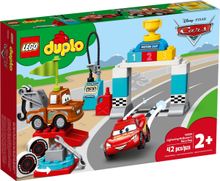 The race is on for fun with the LEGO® DUPLO® ¦ Disney and Pixar Cars Lightning McQueen’s Race Day playset (10924). It’s the perfect toy to turbocharge toddlers’ imaginations and accelerate developmental benefits.