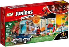 Fire up your child's imagination for some LEGO® Juniors The Incredibles 2 adventures with The Great Home Escape set. This exciting set features a house facade with Quick Start wall and baseplate, moving fireplace with secret control panel, waterfall with capture function, a pool area, lounge chair with catapult function, plus a buildable car with Quick Start chassis and removable catapult. This fun children's toy also includes a simple guide to build and play, to help build confidence in children ages 4-5. Includes 3 minifigures and a baby figure.